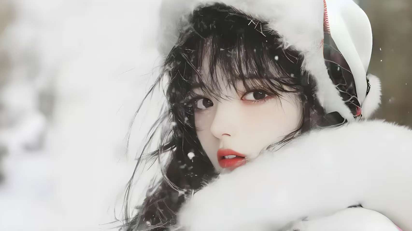 冬日雪境里,人物裹着毛绒衣物静立,发梢落着细雪,似琼花栖于青丝。素白天地作衬,清寒气韵中漾着温婉,恰似冰雪研磨出的一首抒情诗,将刹那的静美永远定格在时光里。